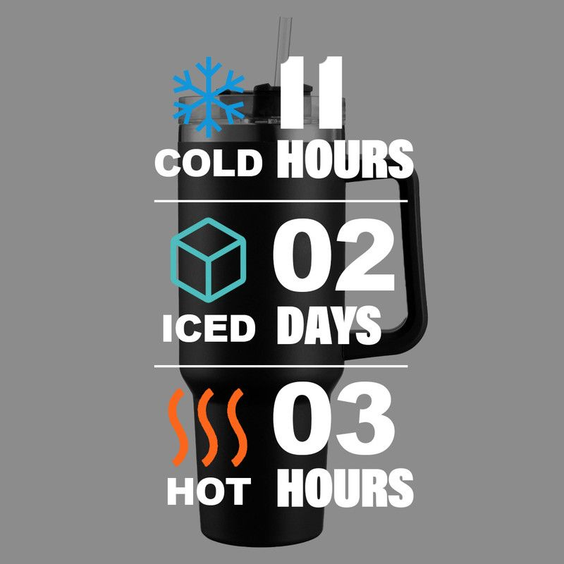 1.2L Personalised Tumbler with Handle Straw Lid, Stainless Steel Travel Tumbler Mug - Black